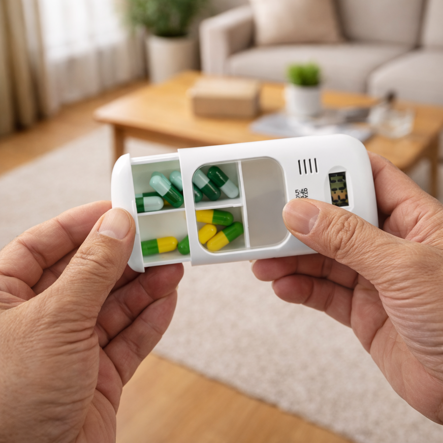 بعيداً عن شنطة الادوية التقليدية اللي بتتعبهم وهم بيدوروا على دواهم في كل مرة .. الجهاز ده هيرتب وينظم الجرعات كلها في مكان واحد صغير