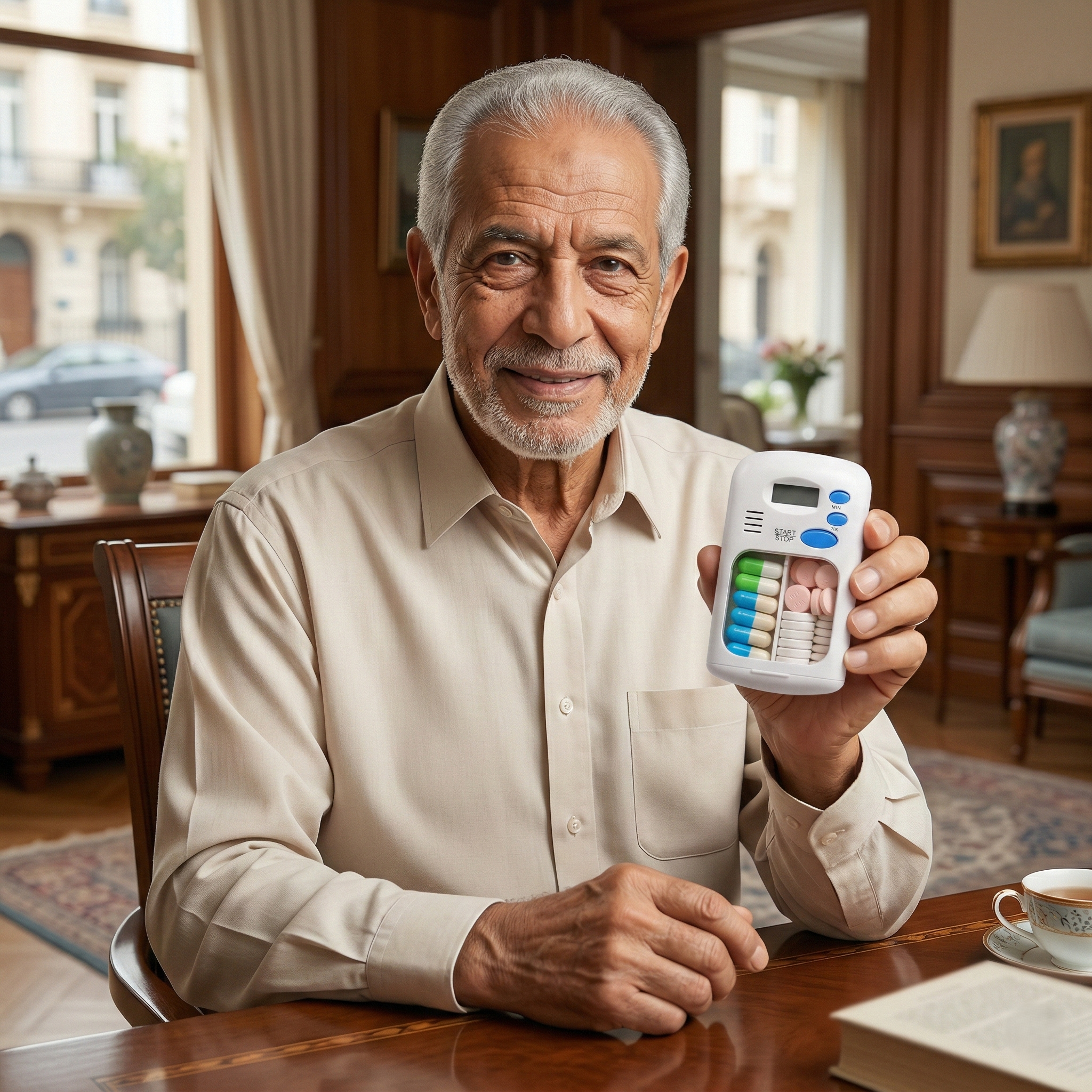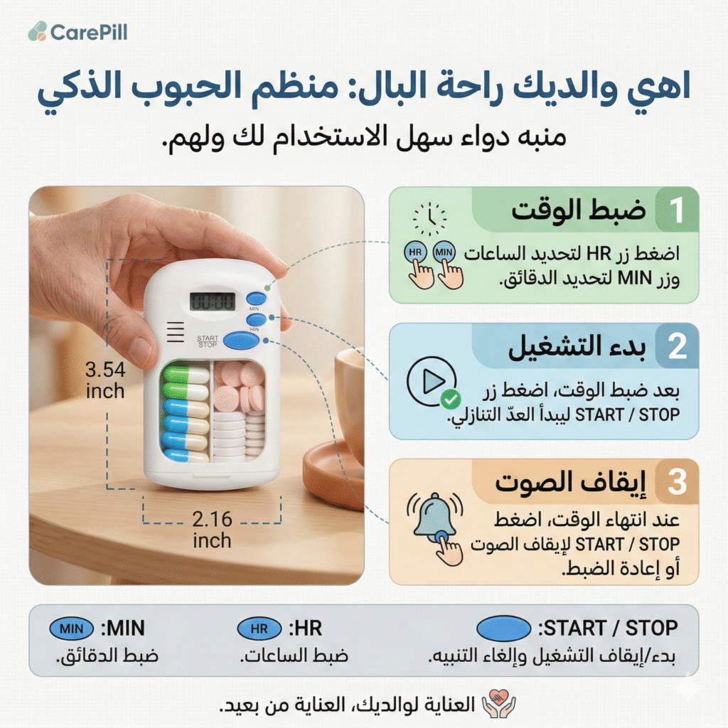 بدون تشتت او لخبطة في الأدوية وبدون نسيان لمواعيد الجرعات .. الجهاز هيبقى جنبهم ومعاهم في أي وقت ويفكرهم بالمواعيد 👌